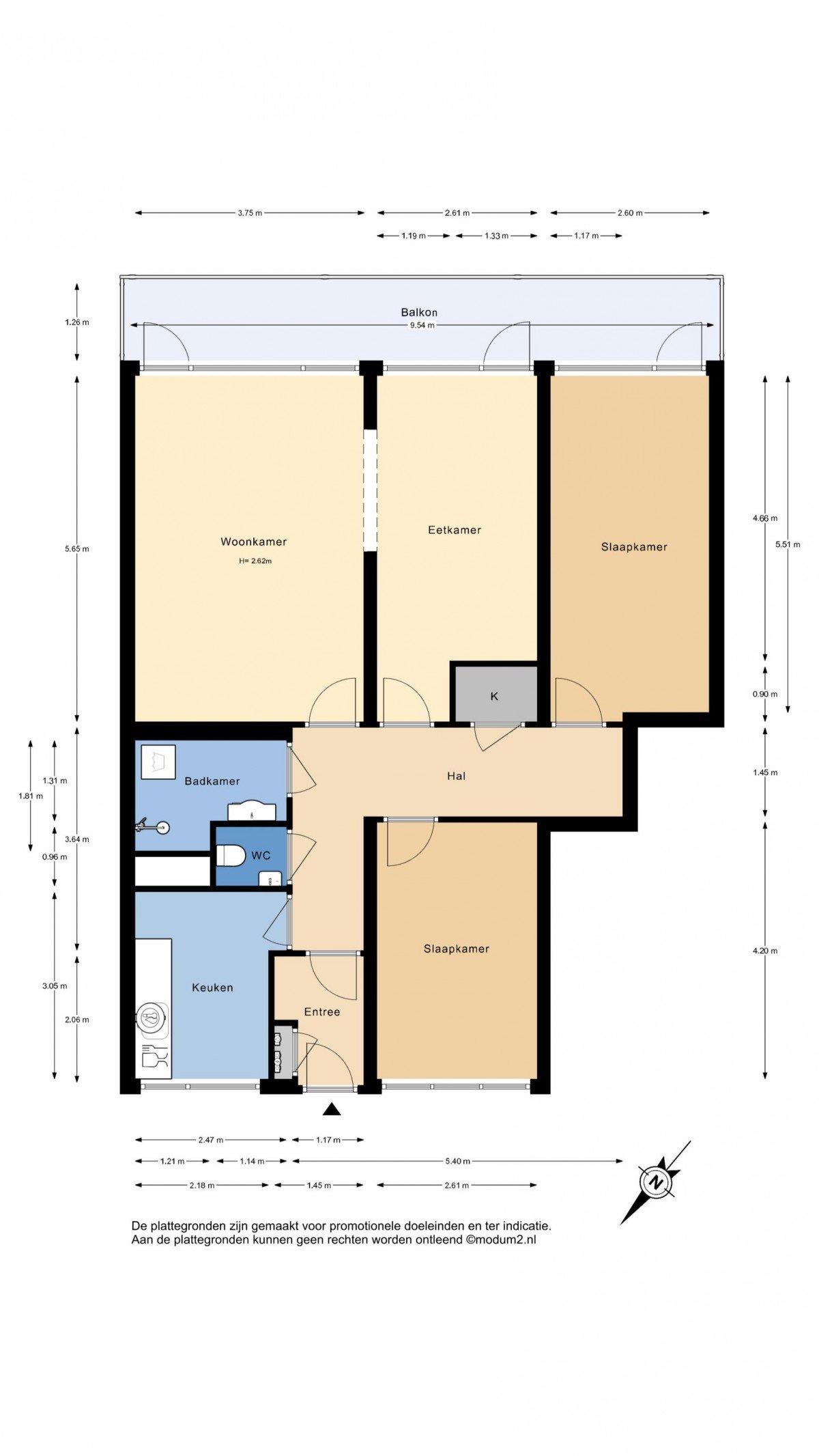 3 kamer appartement, 54 m²