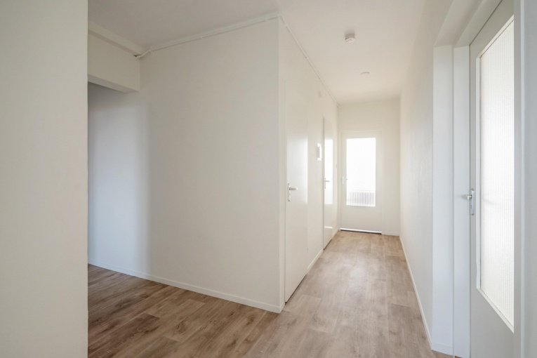 Toegang tot het appartement via de ruime inpandige hal. Entree appartement. Ruime hal met meterkast en toegang tot alle vertrekken, eenvoudig toilet met fonteintje. Vanuit de hal toegang tot de ruime maar eenvoudige keuken met toegang tot het balkon. Ruime en lichte woon-/eetkamer voorzien van vaste kasten en zijramen. Drie ruime slaapkamers en de badkamer met ligbad, douche, wastafel en wasmachine aansluiting.