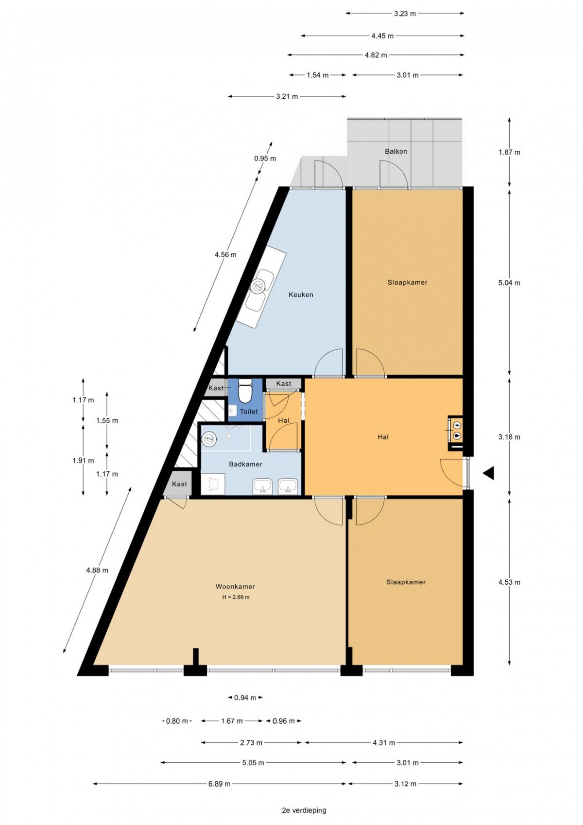 3 kamer appartement, 54 m²