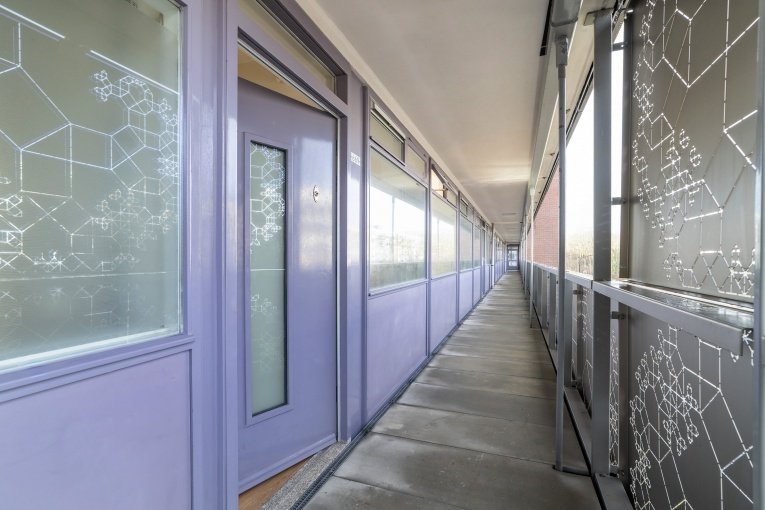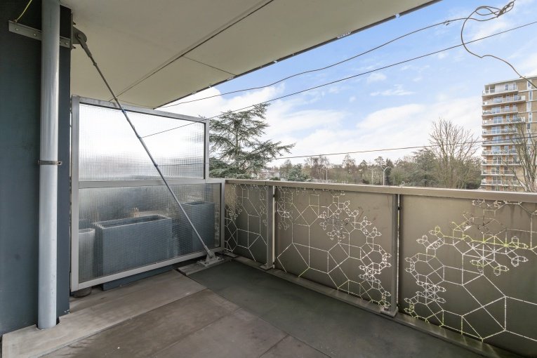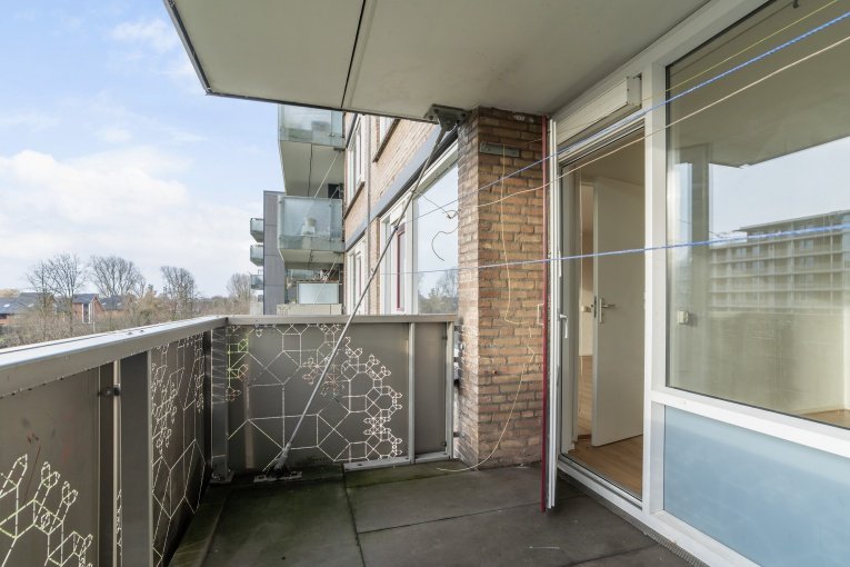 Fraaie, ruim en afgesloten entree met bellentableau, trappenhuis en lift; via de galerij komt u bij de appartementen. 4- kamer appartement (2 slaapkamers) op de 3e verdieping met ruim zonnig balkon en eigen (fietsen)berging: