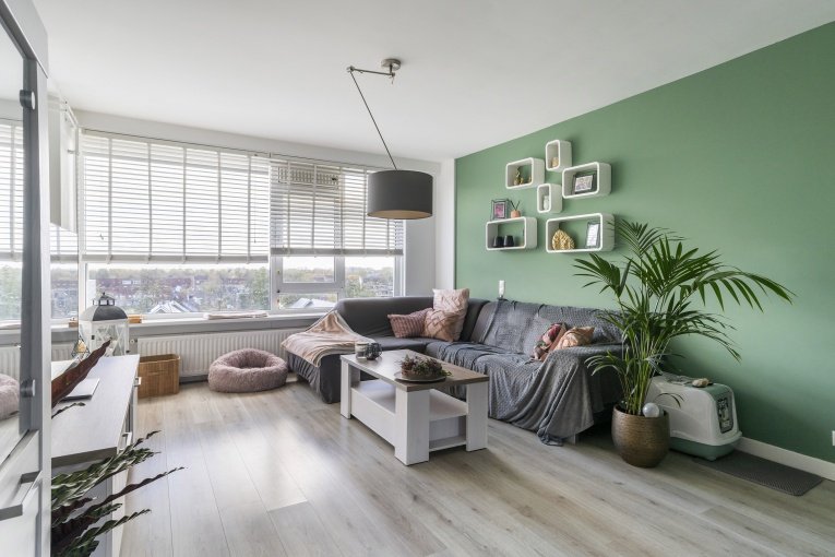 - Het appartement is nagenoeg geheel voorzien van een laminaatvloer;
