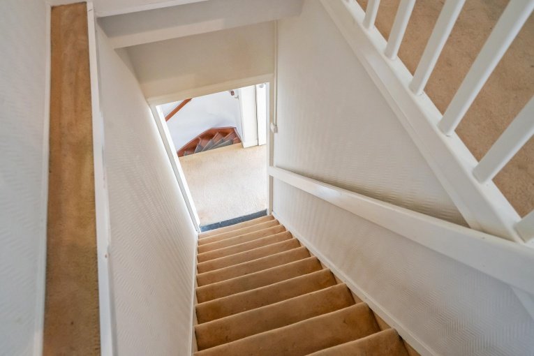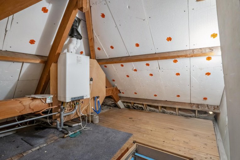 Vlizotrap naar de vliering met veel opbergruimte en opstelplaats voor de c.v.-ketel (Intergas HRE 3630CW5).