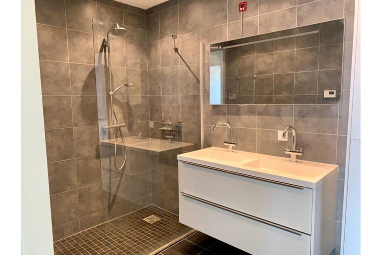 2 Ruime slaapkamers. Tussenliggende moderne badkamer met inloopdouche en dubbele vaste wastafel (onderhoud extra voorzieningen zoals douchescherm en wastafelmeubel zijn voor huurder).