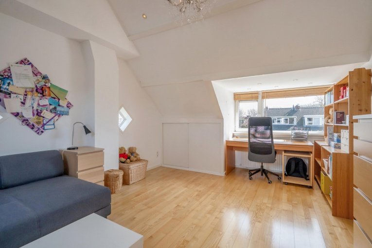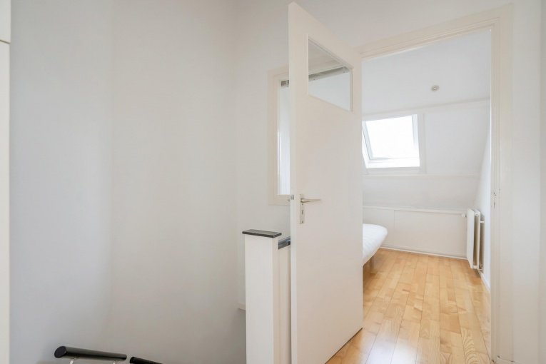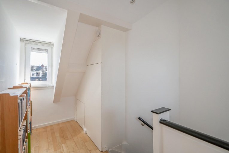 Overloop met dakkapel, bergruimte en opstelplaats C.V.-ketel. Royale slaapkamer met dakkapel, dakraam en bergruimte. Zijslaapkamer met dakvenster.