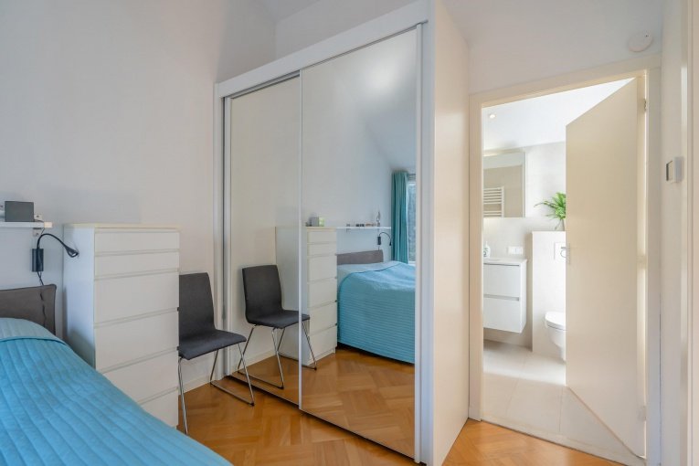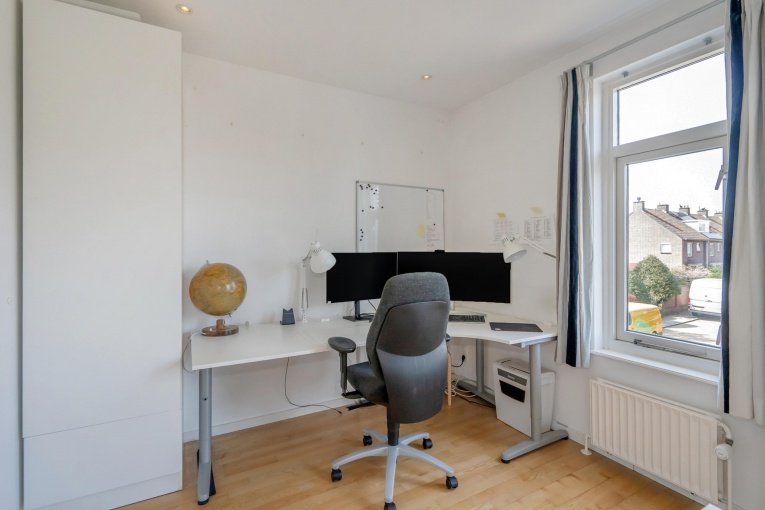 - De woning is voorzien van 2 c.v. combiketels, één voor de woning en één voor de slaapkamer en de badkamer op de