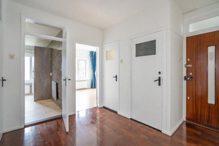 Entree woning. Ruime hal met meterkast. Ruime en lichte woonkamer. Achterbalkon met vrij uitzicht. Moderne dichte keuken, welke volledig is uitgerust met inbouwapparatuur, waaronder een koel-/vriescombinatie, oven, vaatwasser en inductiekookplaat met afzuiging. Hoofdslaapkamer, welke rustig is gelegen aan de achterzijde. Modern separaat toilet. Moderne en tijdloze badkamer met inloopdouche, wastafelmeubel en handdoekradiator. Goed bemeten slaapkamer aan de voorzijde.