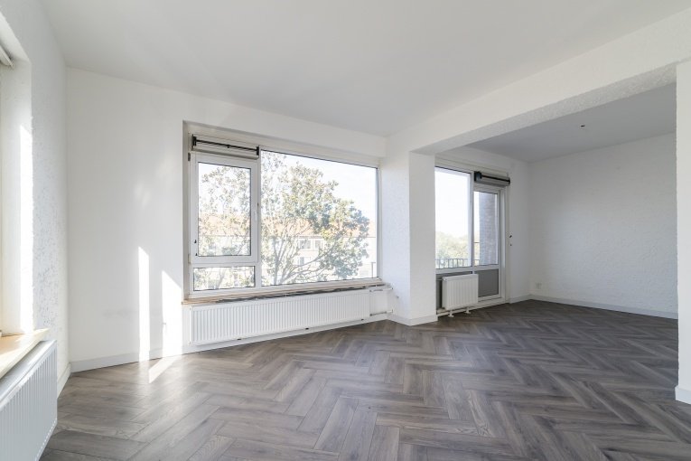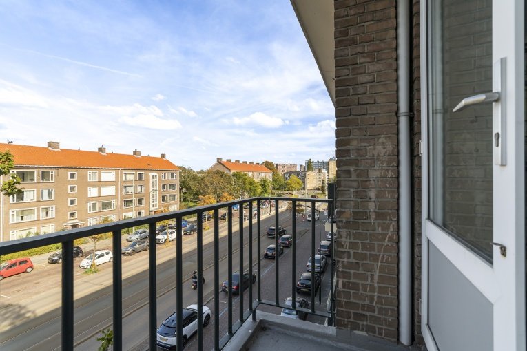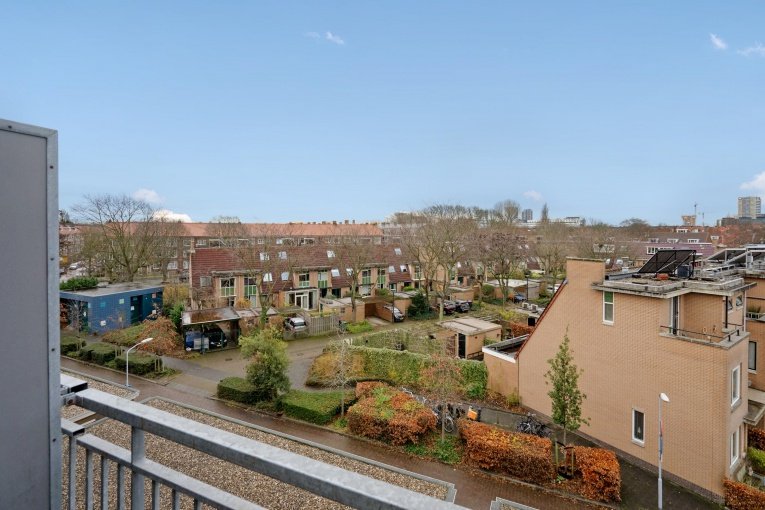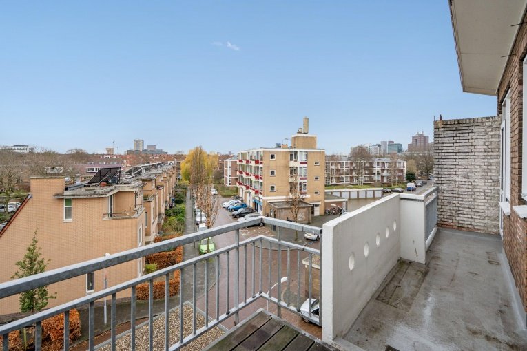 LICHT 4-KAMER HOEKAPPARTEMENT OP DE 3E VERDIEPING met vergroot achterbalkon en berging achter het pand. Het appartement heeft vrij uitzicht aan de voorzijde en aan de achterzijde een fraai uitzicht over groen en water.