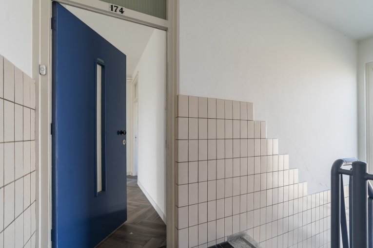 Entree op straatniveau met brievenbussen en bellentableau. Trap naar de 3e verdieping.