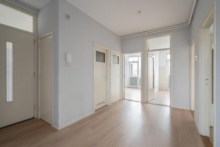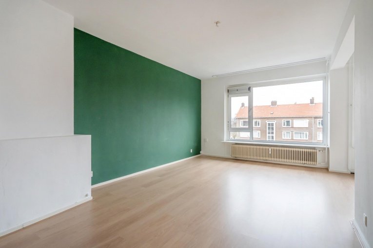 You reach the apartment via the neat and open staircase. The entrance leads to a spacious central hall, which provides a pleasant layout and a feeling of spaciousness. All rooms are directly accessible from the hall. The bright L-shaped living room features large windows at the front with unobstructed views of Julianalaan. The living room can be divided into a living room and an additional study or bedroom.