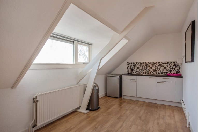 Vanuit de overloop is de vliering bereikbaar. Deze verdieping heeft weinig nodig om te verbouwen naar 2 gezellige en ruime slaapkamers.
