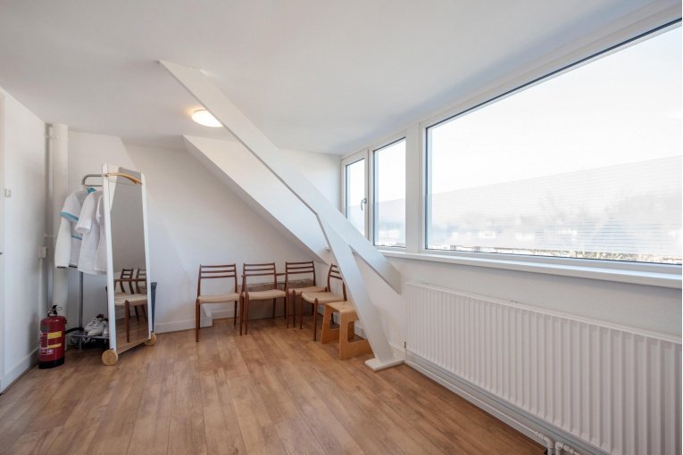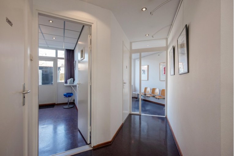 1e verdieping: op deze verdieping bevinden zich nu verschillende behandelruimtes alsmede een wachtkamer en toilet, die kunnen perfect omgevormd worden tot slaapkamers, studeerkamer en ruime badkamer.