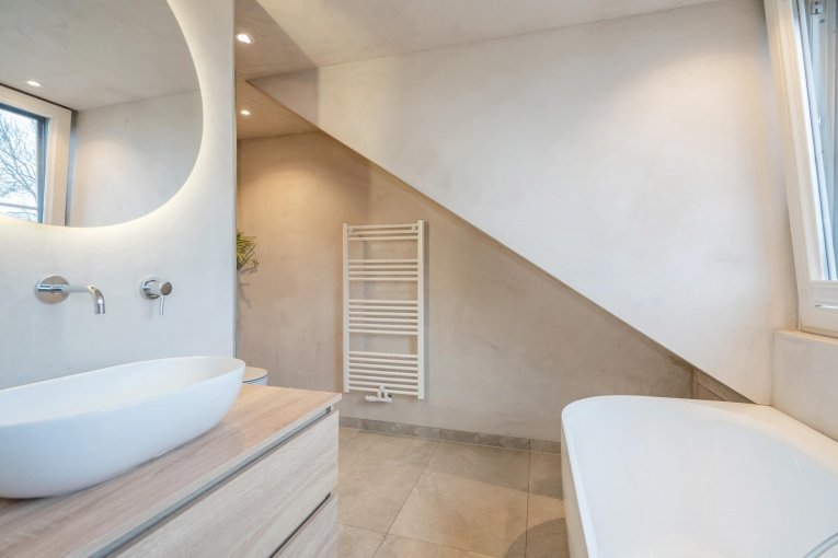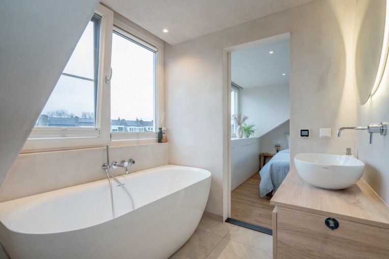 - Zeer royale zolderverdieping voorzien van ruime slaapkamer en eigen en suite badkamer;