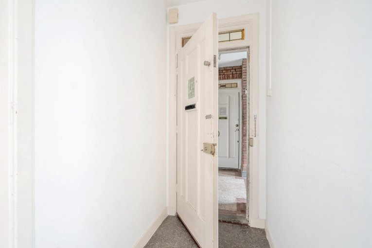 Toegang via open portiek met trap naar 1e verdieping, entree, hal met meterkast, woonkamer ensuite, slaapkamer aan de voorzijde, toilet, eenvoudige keuken, badkamer met ligbad, douche en dubbele wastafel. Tevens is hier de aansluiting voor de wasmachine.