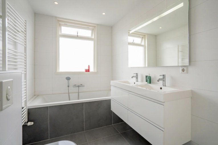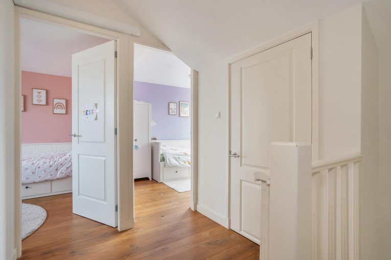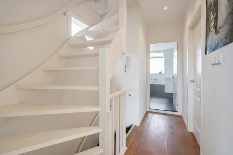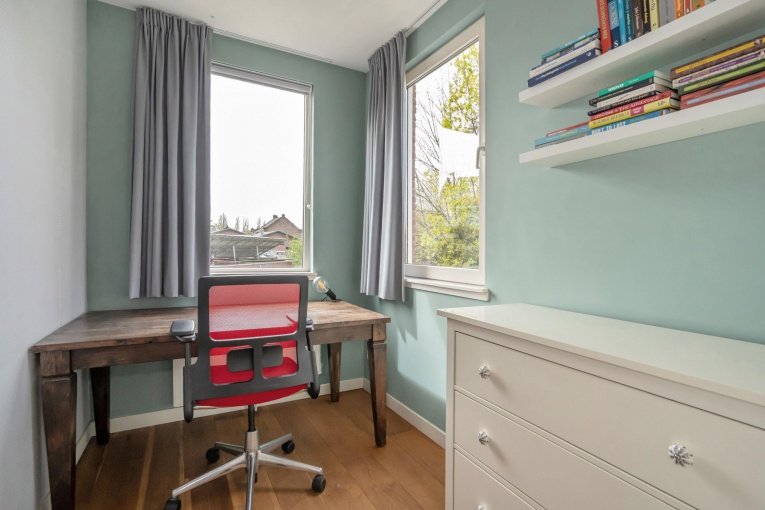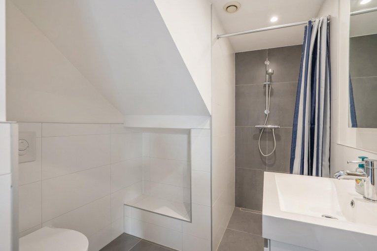 Tweede verdieping: Overloop, berging met de opstelplaats C.V.-gasketel en de aansluiting voor de wasmachine en de droger. Moderne tweede badkamer met inloopdouche, toilet en wastafel. Voorslaapkamer met dakkapel. Achterslaapkamer met dakkapel.