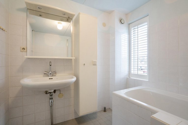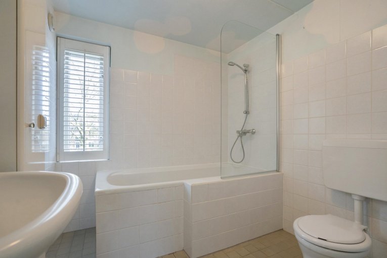 Overloop. Voorslaapkamer met fraai zicht op de singel en het groen. Nette badkamer met ligbad, wastafel en 2e toilet. Achterslaapkamer, achter/zij slaapkamer met vaste kast.