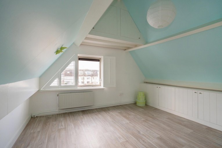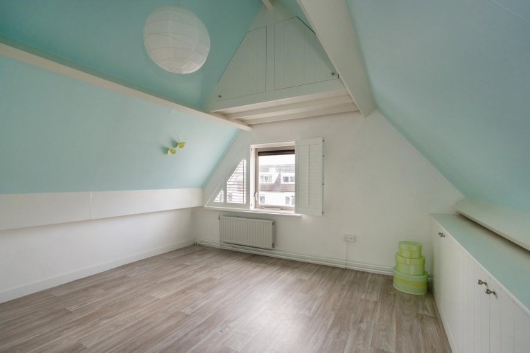 Goede achterslaapkamer met veel bergruimte en kleine vliering.