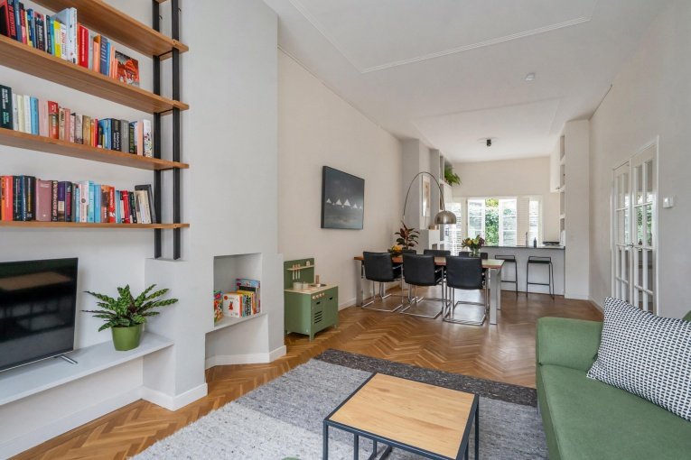 Deze moderne, instapklare benedenwoning combineert karakter met hedendaags comfort. Wat direct opvalt: de indrukwekkende plafondhoogte van circa 3,20 meter. In combinatie met de drempelloze visgraat parketvloer ontstaat een rustige, stijlvolle basis waar je je eigen stijl aan kunt toevoegen.