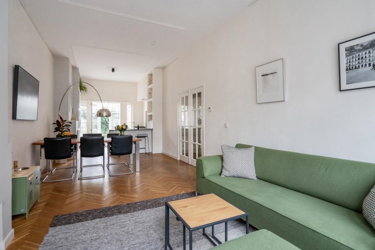De woning bevindt zich in een rustige straat, op loopafstand van de gezellige Theresiastraat, met koffiebars, speciaalzaken en restaurants. Station Laan van NOI en Den Haag Centraal liggen dichtbij, net als uitvalswegen A4 en A12. Daarnaast is het bruisende centrum van Den Haag binnen enkele fietsminuten te bereiken.