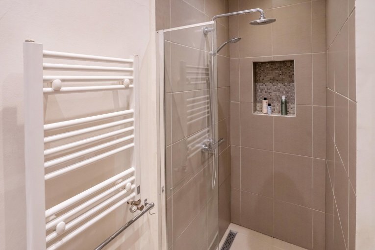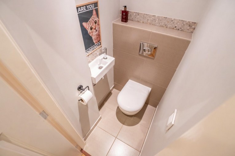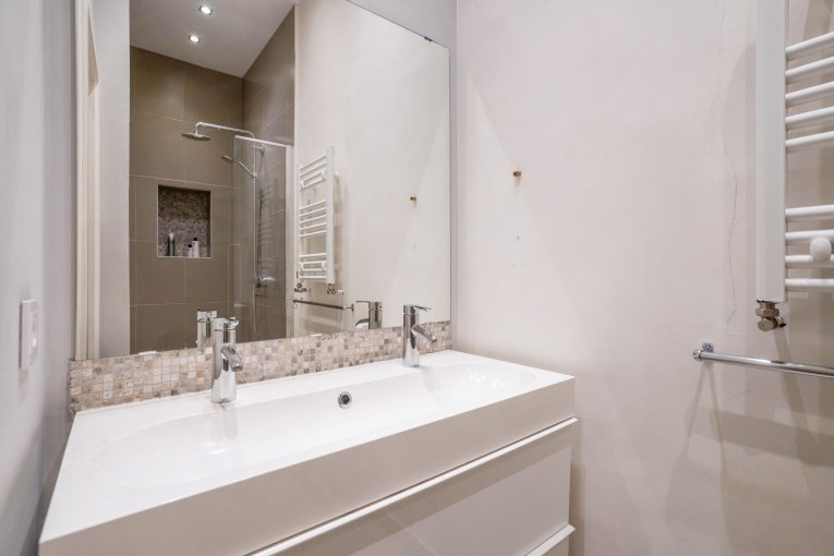 De woning beschikt over een ruime en lichte achterslaapkamer met grote inbouwkast. De moderne badkamer bevat een inloopdouche, breed wastafelmeubel en een handdoekradiator. Tegenover de badkamer bevindt zich een modern separaat toilet met fonteintje en daarnaast een ruimte voor de cv-ketel en wasmachine. Aan de voorzijde van de woning bevindt zich een tweede ruime slaapkamer.
