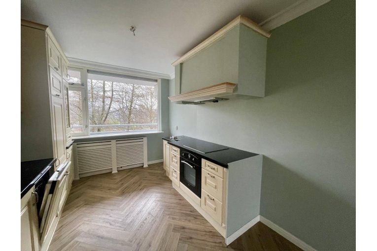 Het 4-kamer appartement (2 slaapkamers) bevindt zich in het appartementencomplex "Johan Friso flat", aan de rand van Rijswijk, in een groene omgeving.