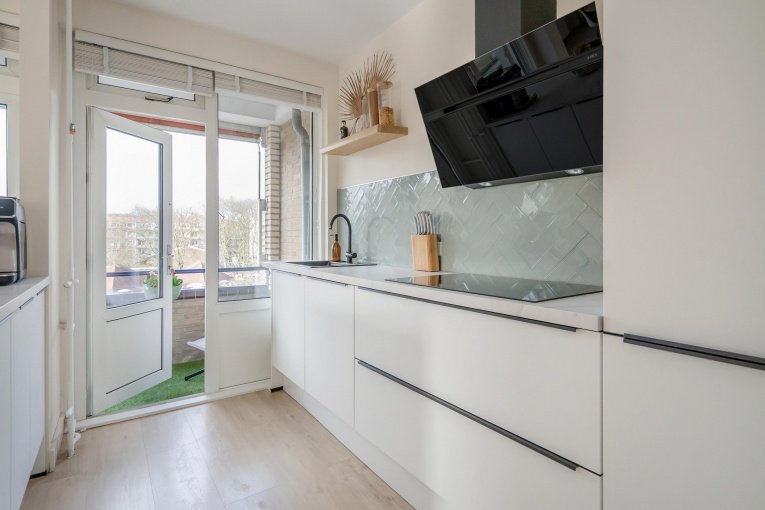 Via de galerij komt u bij de entree van het appartement. Binnenkomst in de ruime hal die toegang biedt tot alle vertrekken. De royale hoofdslaapkamer is comfortabel van formaat en geeft direct toegang tot de moderne badkamer, welke is uitgerust met een inloopdouche, een wastafelmeubel met spiegel en de opstelplaats voor de wasmachine en droger. Daarnaast zijn er nog twee extra slaapkamers, ideaal als kinder-, werk- of logeerkamer. Modern toilet. Vanuit de hal bereikt u via een fraaie zwarte stalen deur met glas de ruime en lichte woonkamer. Aansluitend bevindt zich de moderne woonkeuken, voorzien van diverse inbouwapparatuur en een gezellige eetbar, perfect voor zowel dagelijks gebruik als het ontvangen van gasten. Het zonnige balkon (ZW) is vanuit de woonkamer en de keuken te bereiken en biedt een heerlijke plek om van de middag- en avondzon te genieten.