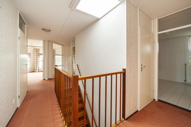 Overloop, vier slaapkamers, was- en stookruimte voorzien van opstelplaats wasmachine en CV ketel, separaat toilet met fonteintje, badkamer voorzien van douche, ligbad, wastafel en losse kast. Via twee slaapkamers is er toegang tot een 2e balkon.