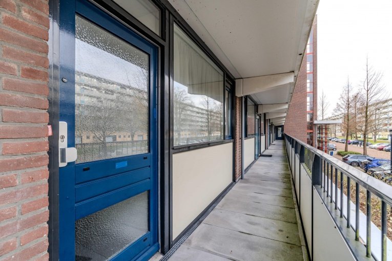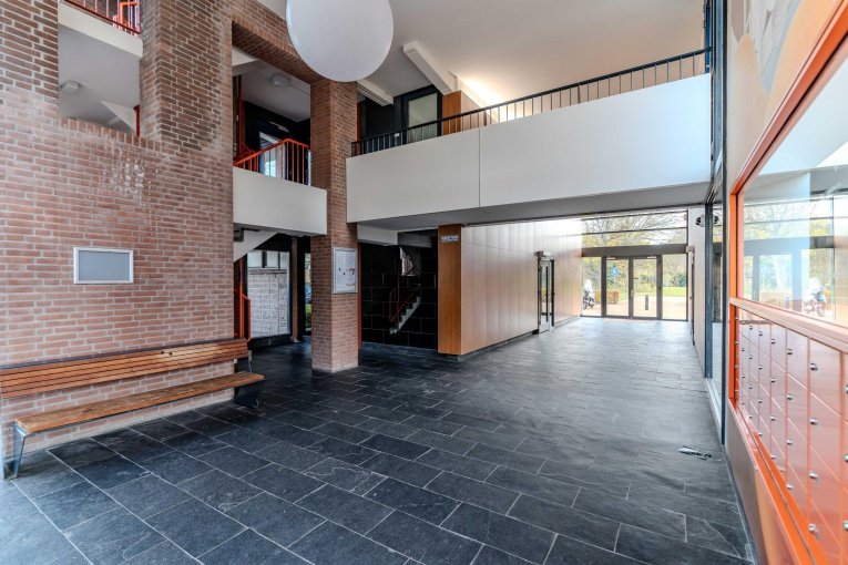 Fraaie, ruim en afgesloten entree met bellentableau, trappenhuis en lift; via de galerij komt u bij de appartementen.