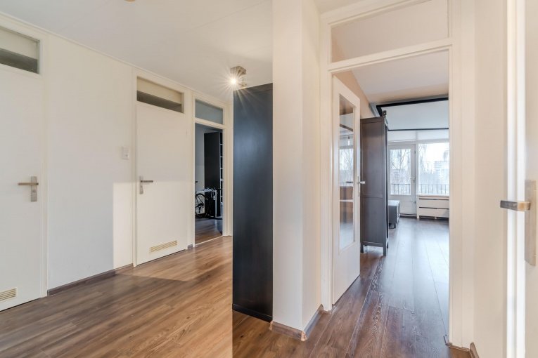 Fraaie, ruim en afgesloten entree met bellentableau, trappenhuis en lift; via de galerij komt u bij de appartementen.