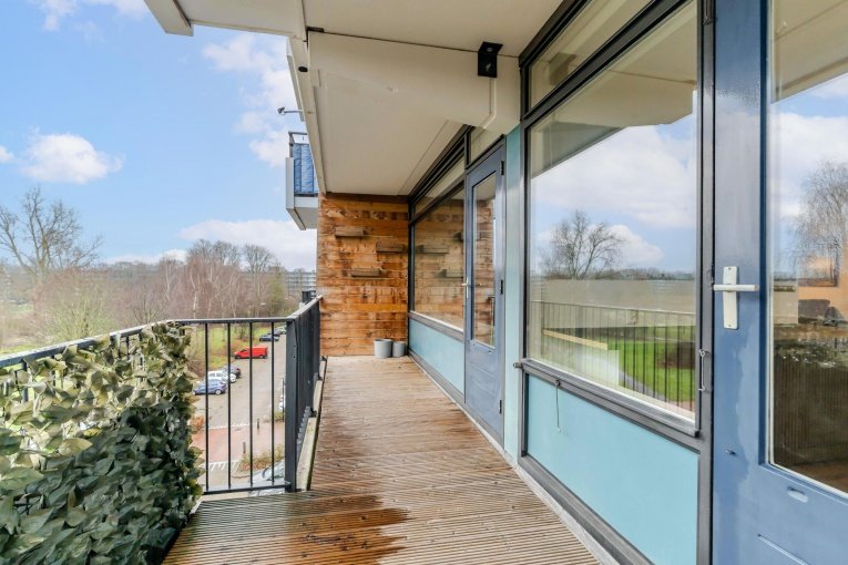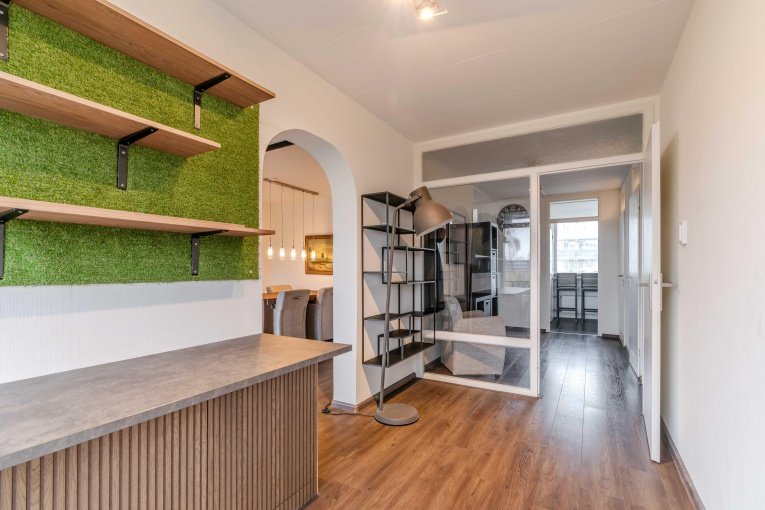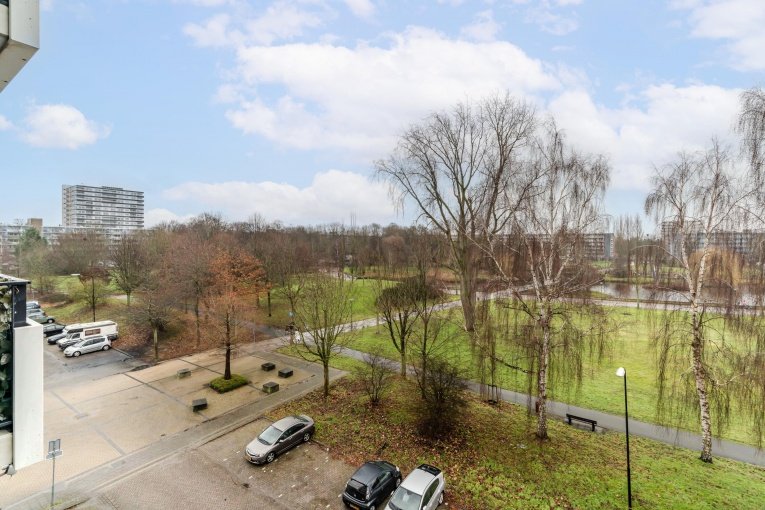 INDELING: entree, vestibule, hal, ruime moderne keuken, modern toilet met fonteintje, moderne badkamer voorzien van wastafelmeubel, douche en wasmachine aansluiting, twee achterslaapkamers, woonkamer met toegang naar ruim balkon (Zuidoosten) met uitzicht over het stadspark, slaapkamer aan de voorzijde.