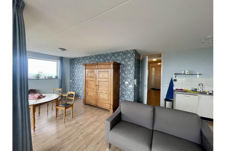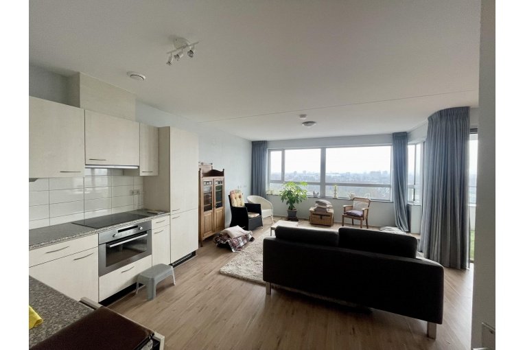 Het ruime 2-kamer appartement (woonkamer, slaapkamer, studeer/bergkamer) betreft een hoekwoning type Henna, heeft een woonoppervlakte van 82 m2 en is gelegen op de 15e verdieping.
