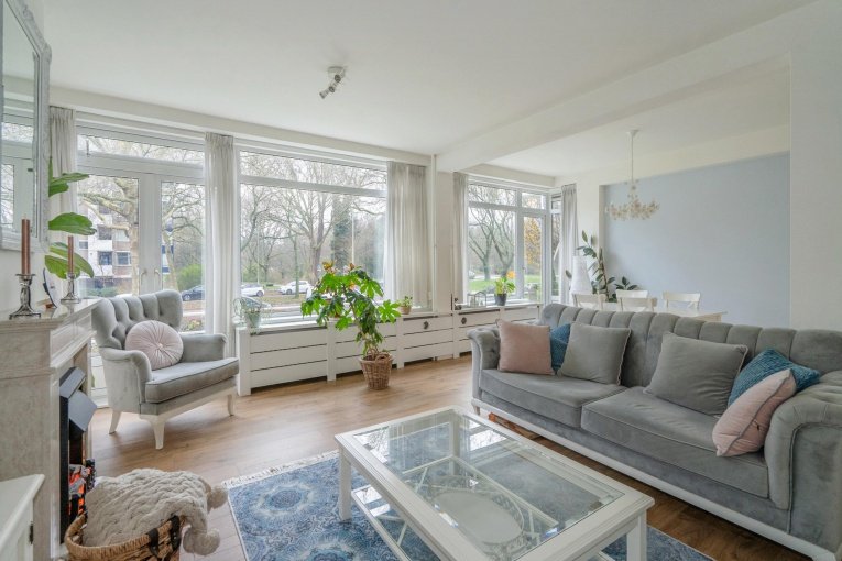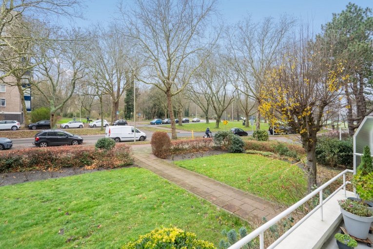 Aan de prachtige, brede en groene Reigersbergenweg ligt deze goed onderhouden 4-kamer (verhoogde) parterre met voor- en achterbalkon en eigen berging.