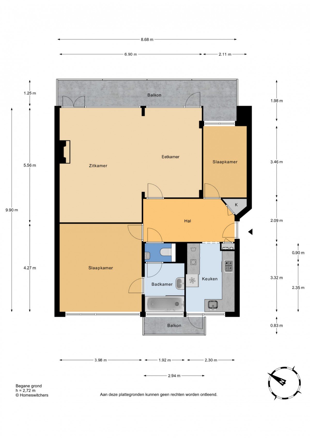 4 kamer appartement, 89 m²