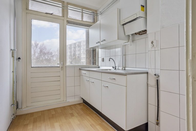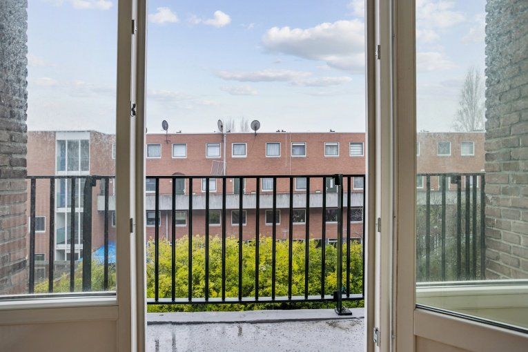 Entree woning, hal met meterkast, nette dichte keuken met opstelplaats c.v. ketel, balkon aan de voorzijde, lichte woonkamer, twee slaapkamers aan de achterzijde met achterbalkon gelegen op het zuiden, separaat toilet, moderne badkamer met douche en wastafel.