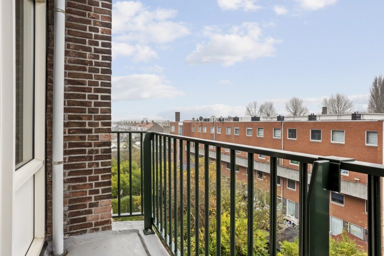 Wat dit appartement extra aantrekkelijk maakt, zijn de twee balkons. Aan de achterzijde bevindt zich een zonnig balkon op het zuiden waar je heerlijk kunt genieten van de zon. Aan de voorzijde is er een tweede balkon met vrij uitzicht over de omgeving. Zowel aan de voor- als achterzijde ervaar je een ruimtelijk gevoel, met zelfs zicht richting de Euromast.