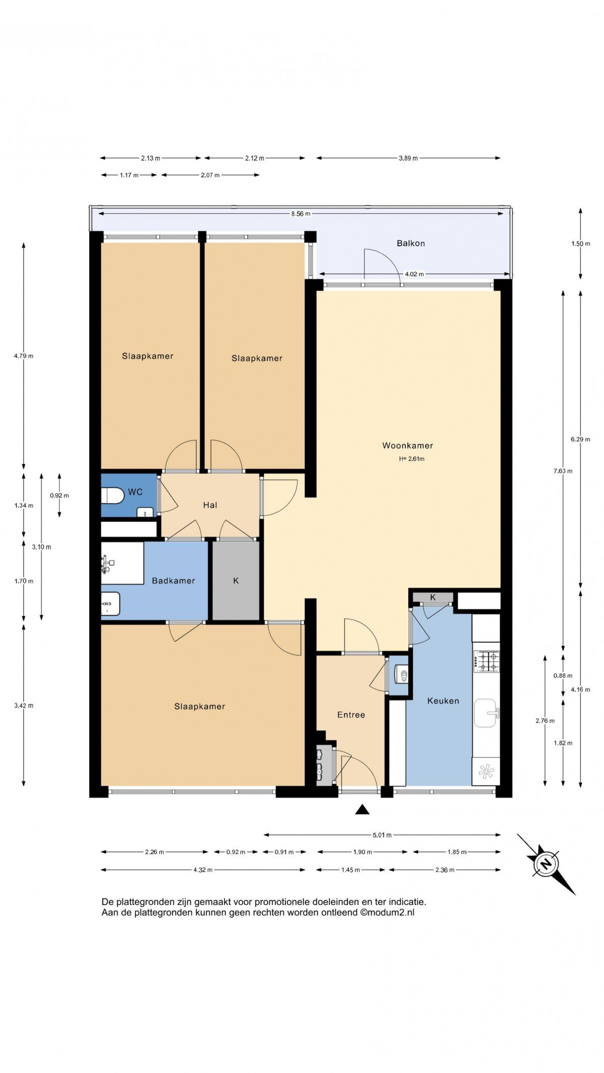 3 kamer appartement, 72 m²