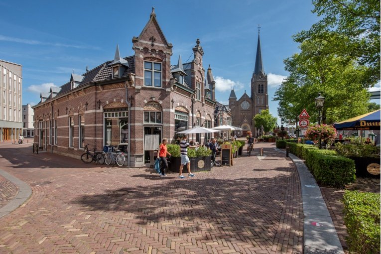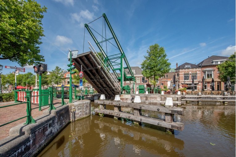 Indeling; entree bij bruggetje bij de Sluisjes van Leidschendam. Gezellige terrasjes en winkels letterlijk om de hoek.