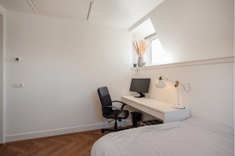 Voorheen waren de thans 4 separate kamers, 1 ruimte. Huidig eigenaar heeft creatief de handen uit de mouwen gestoken en handig ingedeeld. Mooie werkplekken of juist uw idee?