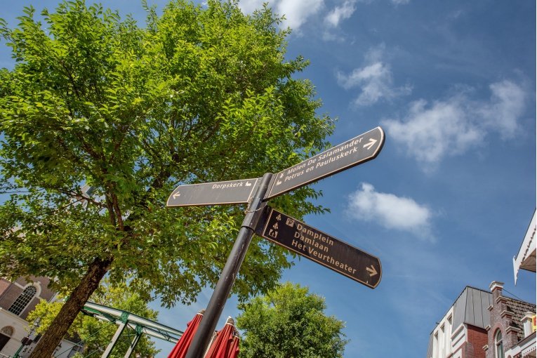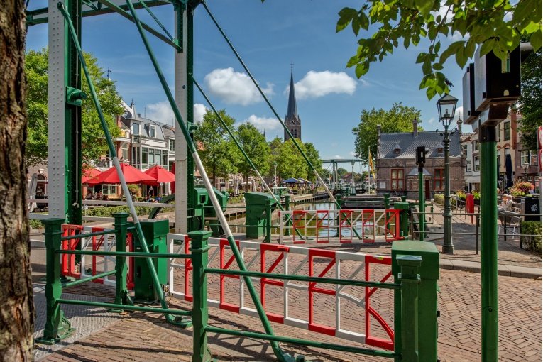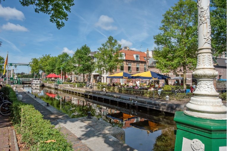 Indeling; entree bij bruggetje bij de Sluisjes van Leidschendam. Gezellige terrasjes en winkels letterlijk om de hoek.