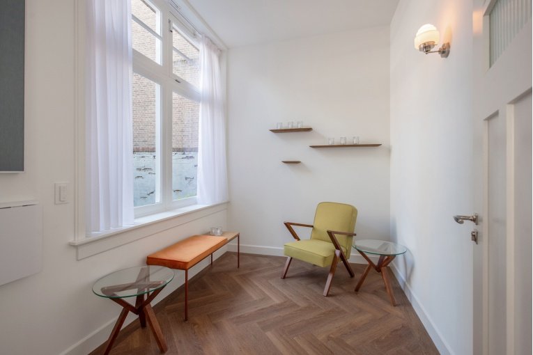 Voorheen waren de thans 4 separate kamers, 1 ruimte. Huidig eigenaar heeft creatief de handen uit de mouwen gestoken en handig ingedeeld. Mooie werkplekken of juist uw idee?