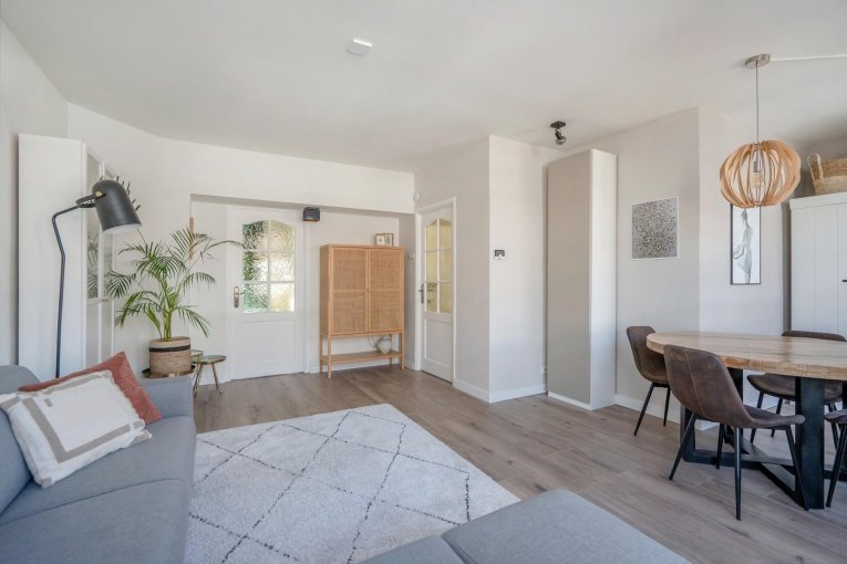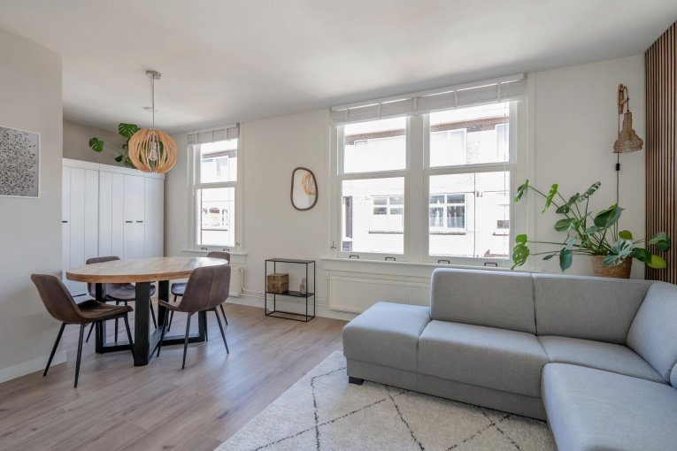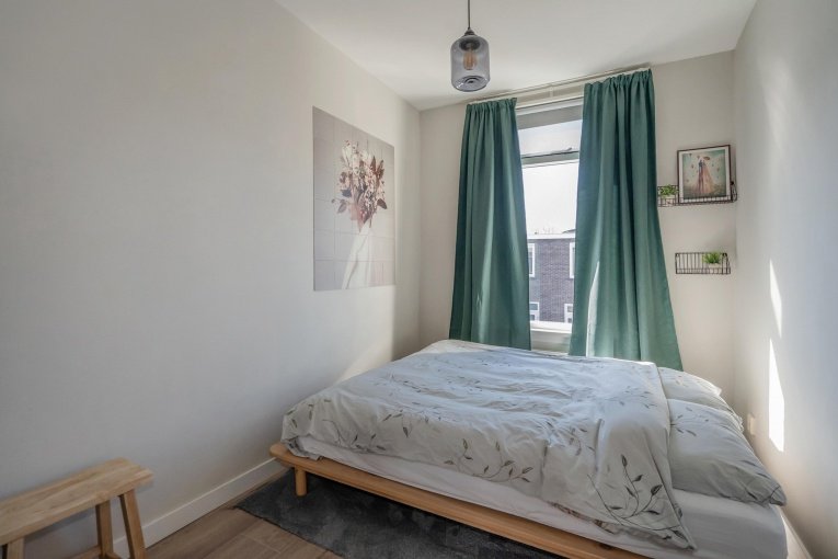 De lichte L-vormige woon-/eetkamer biedt volop ruimte voor zowel een comfortabele zithoek als een gezellige eethoek. Dankzij de prettige lichtinval voelt de ruimte open en uitnodigend aan. Vanuit de woonkamer bereikt u de slaapkamer, die rustig is gelegen.