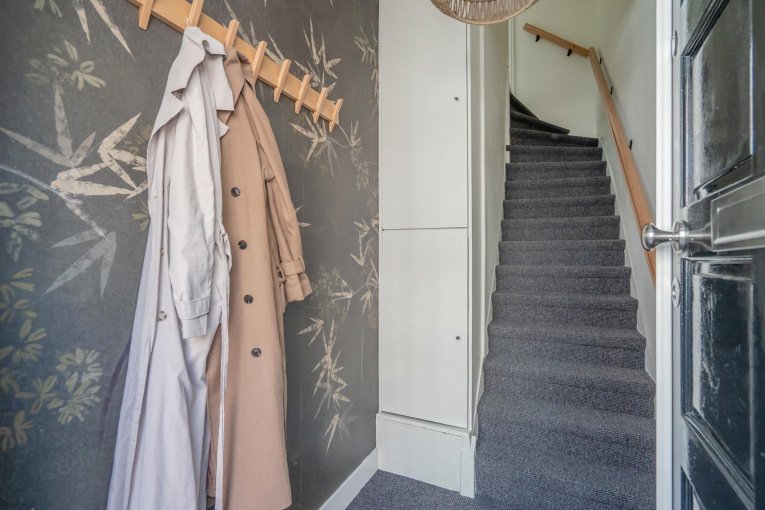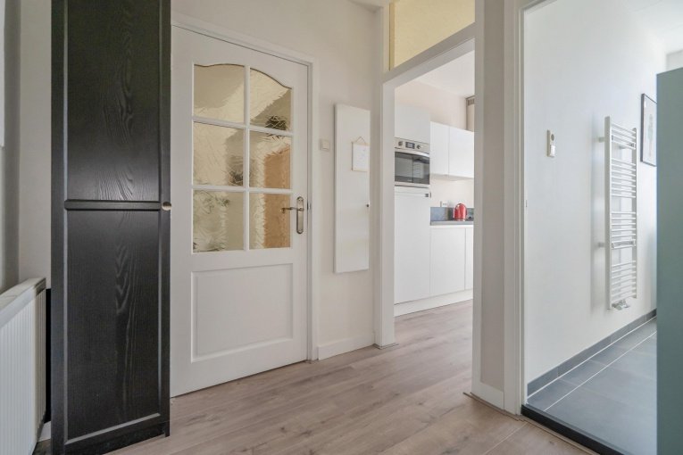 Via de entree op de begane grond komt u binnen in een halletje met trapopgang naar de eerste verdieping, waar het appartement is gelegen. Boven aangekomen treft u een ruime hal die toegang biedt tot bijna alle vertrekken.