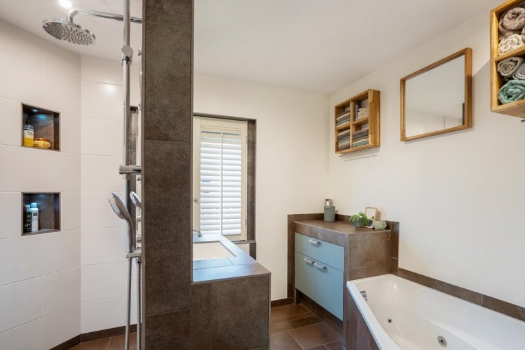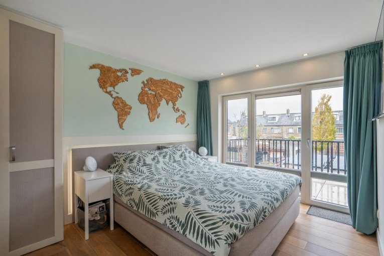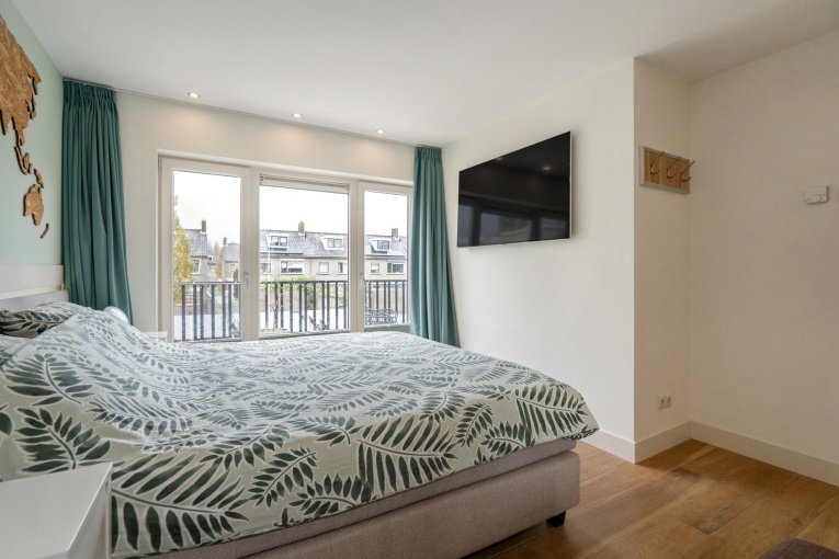 Overloop. Modern vrijdragend toilet. Ruime achterslaapkamer met royale kastenwand en toegang tot het dakterras. Ruime moderne badkamer voorzien van whirlpool, dubbele douche en wastafelmeubel. De badkamer is tevens voorzien van een automatische afzuiging met vochtsensor. Voorslaapkamer. Ruime waskamer met wasmachine en droger aansluiting, pantry en veel bergruimte.