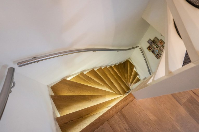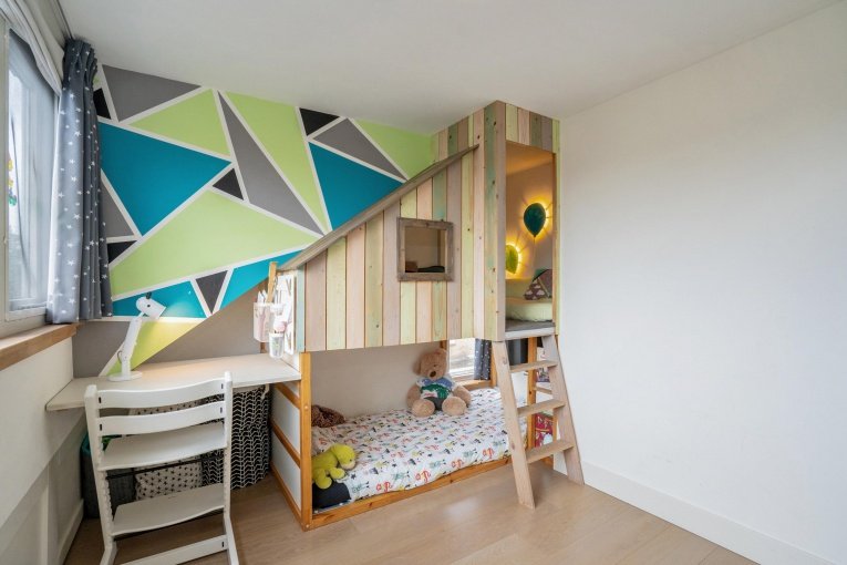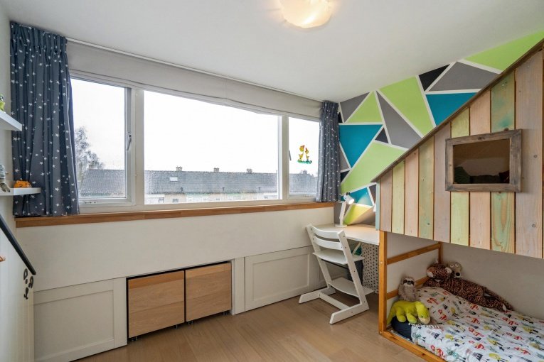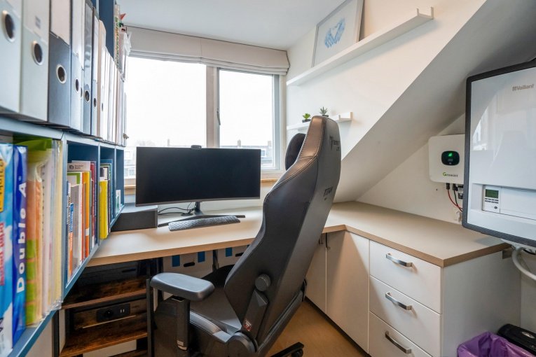 Overloop. Voorslaapkamer met dakkapel. Achterslaapkamer met dakkapel. Werkkamer met dakkapel. Opstelplaats voor de warmtepompboiler, omvormer en stille afzuigunit. Royale berging aan de voorzijde.