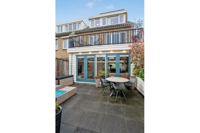 Via de keuken komt u in de uitgebouwde woonkamer met openslaande deuren naar de achtertuin. In de tuin bevinden zich een zeer ruime garage/berging met roldeur over de volle breedte van de tuin welke is voorzien van elektra en biedt toegang tot de achteringang welke uitkomt op het grote parkeerplein voor bewoners.