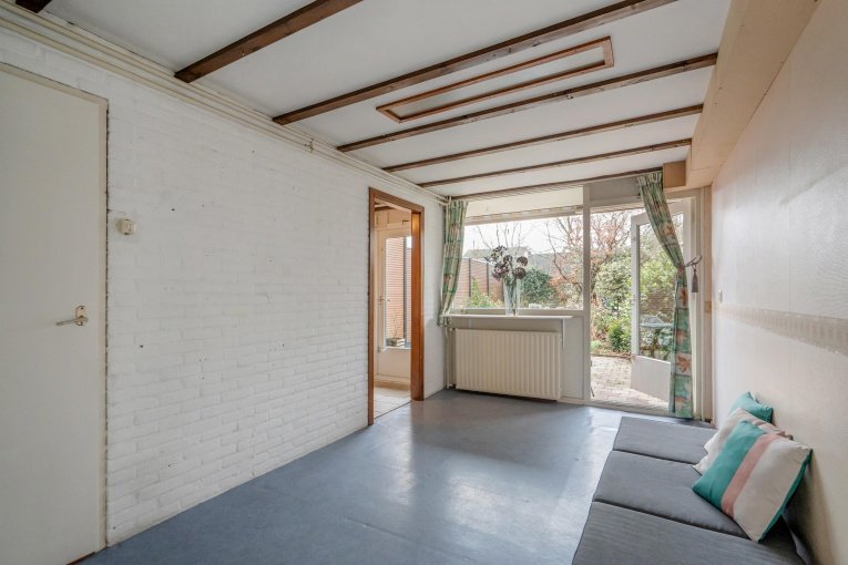 Ruime (drive-in)ééngezinswoning met 3 slaapkamers, 2 tuinkamers met extra keukenblok, inpandige garage en parkeerplaats op eigen terrein.