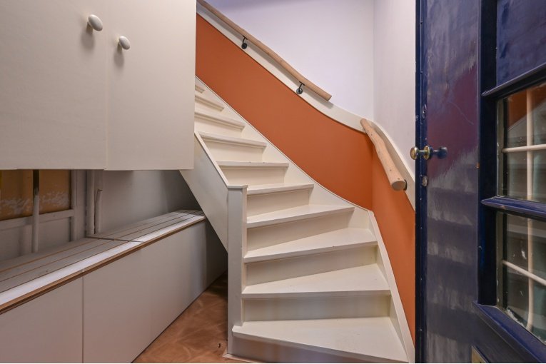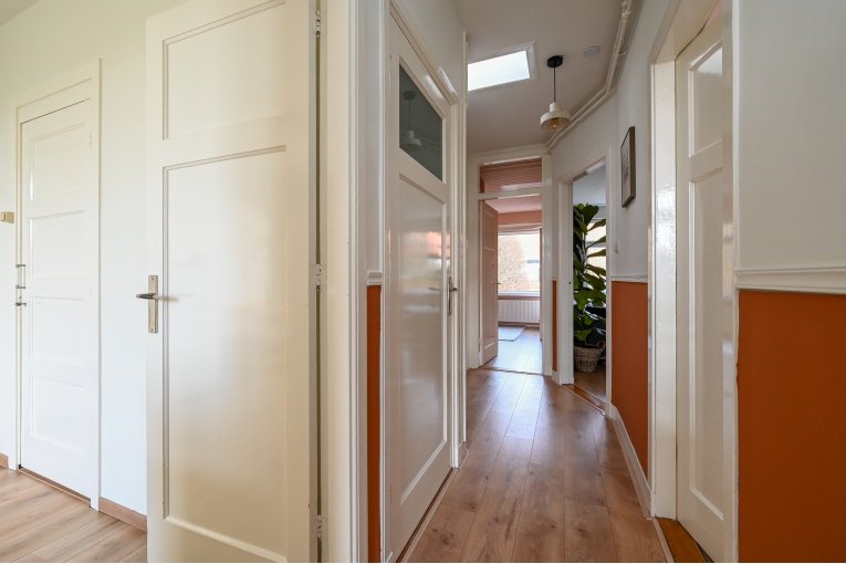 Portiektrap naar de eerste verdieping. Entree woning. Hal, meterkast en de trap naar tweede verdieping. Overloop met boven de trapopgang een handige bergruimte. Woonkamer aan de voorzijde van de woning. Royale moderne badkamer voorzien van dubbele wastafel, inloopdouche en opstelplaats wasmachine en droger. Ruime voorslaapkamer. Modern toilet. Zeer ruime achterslaapkamer met toegang via de schuifpui tot het zonnige achterbalkon. Achterzijslaapkamer met handige inbouwkast. Moderne keuken voorzien van diverse inbouwapparatuur.