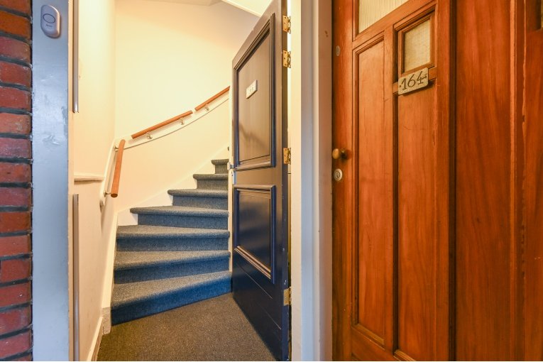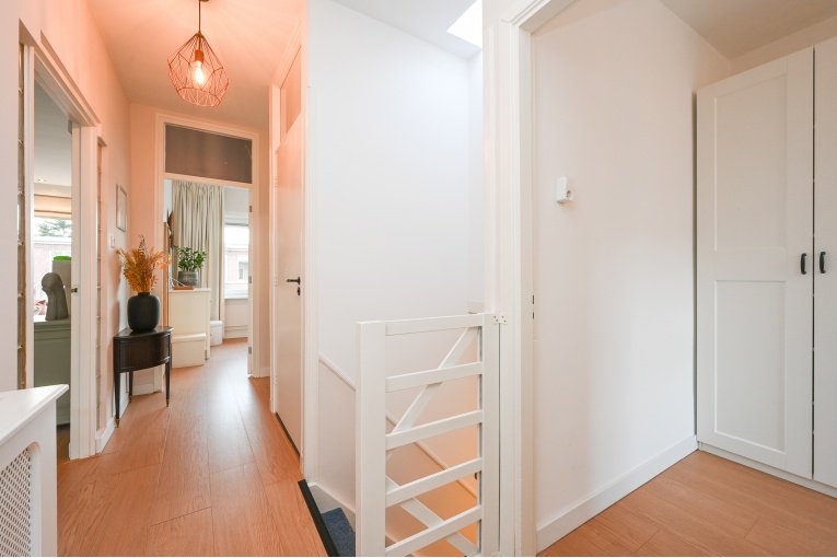 Via open portiek entree tot het appartement op de 1e verdieping, hal met meterkast en de trap naar de 2e verdieping.