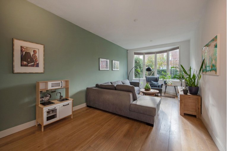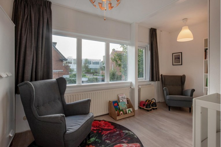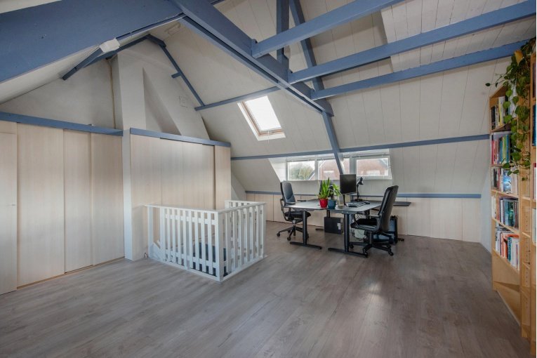 Ruime, zeer lichte zolderetage met voor- en achter dakkapel en drie grote tuimelramen (thans in gebruik als riante thuiswerkplek). Stookruimte met nieuwe c.v.-combiketel HR oktober 2025. Het maken van 2 slaapkamers en een 2e badkamer behoort tot de mogelijkheden.