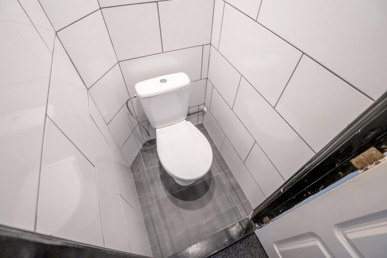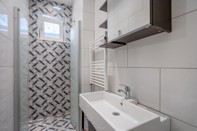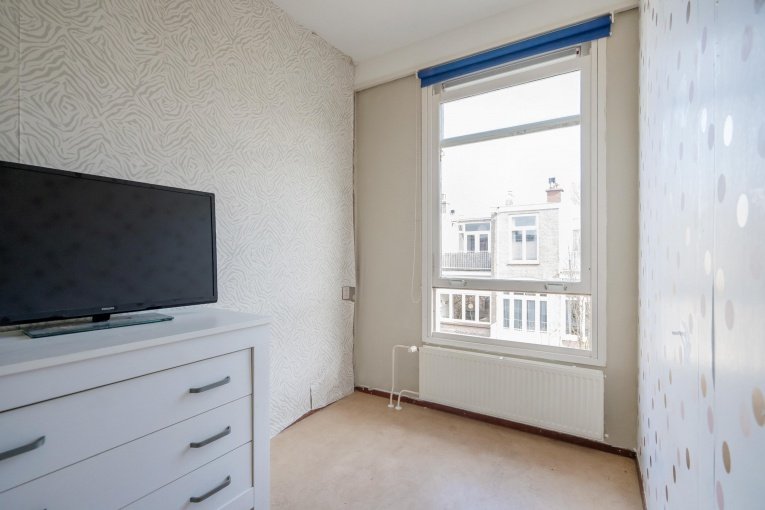 Aan de achterzijde van de woning bevindt zich een slaapkamer ideaal als rustige slaap- of werkkamer. De badkamer is voorzien van een douche en een wastafel.