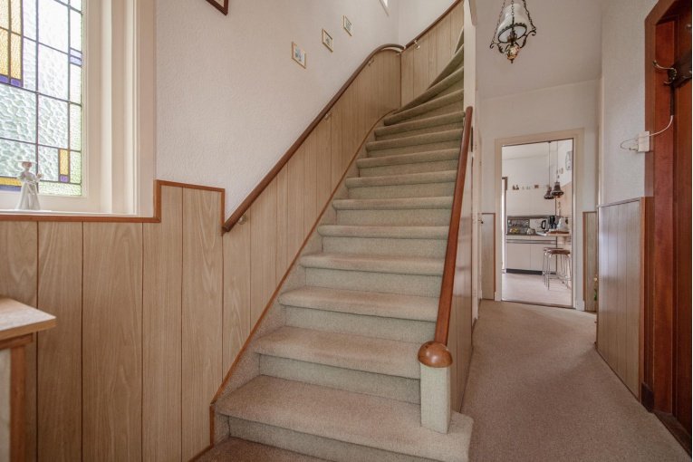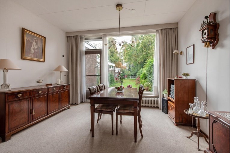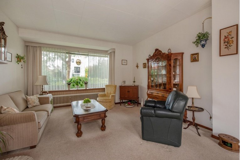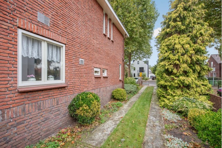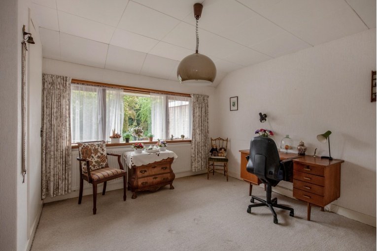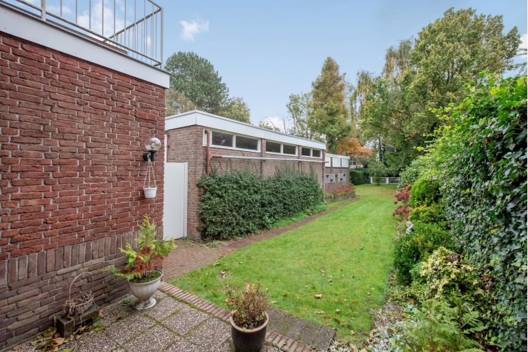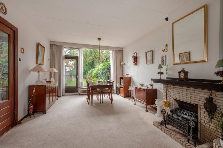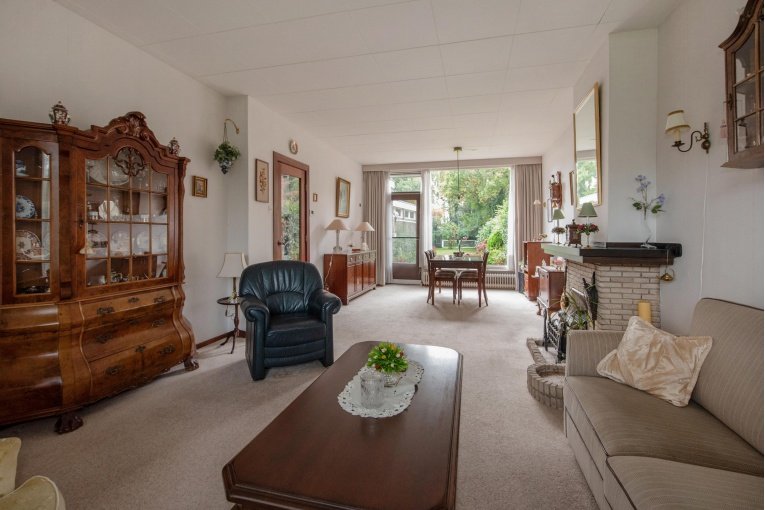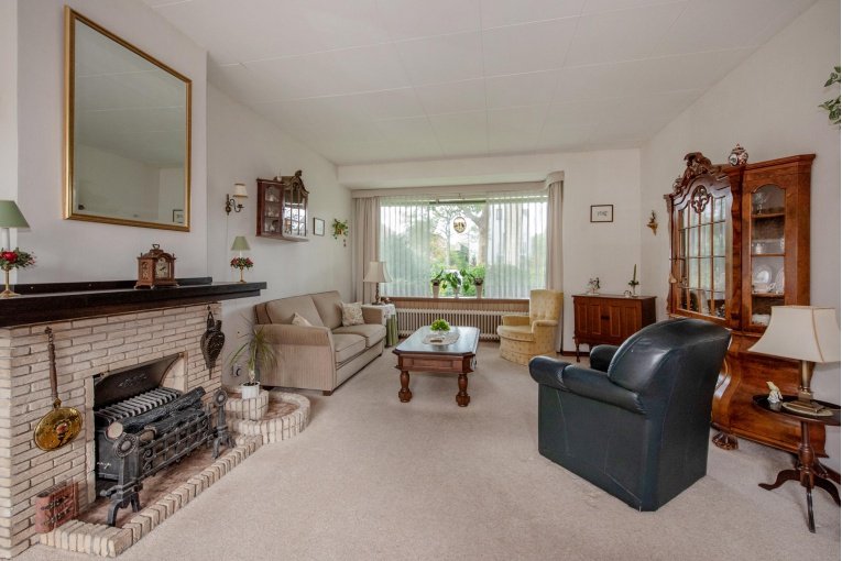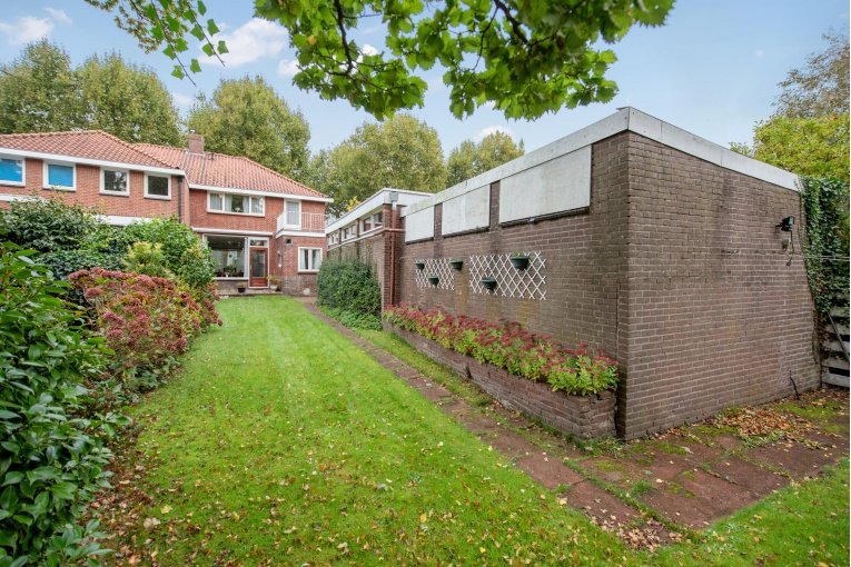 Voortuin. Oprit met de opstelplaats voor 2/3 auto’s. Entree woning. Hal. Mooie originele glas-in-lood ramen bij de zijgevel. Trapkast. Net toilet. Eenvoudige maar ruime keuken met ramen naar de zij-tuin en doorloop naar de aanbouw met de bijkeuken, opstelplaats c.v.-ketel en toegang tot de zij-tuin. Vanuit de hal van de woning komt u in de ruime woon-/eetkamer met open haard. Vanuit de eetkamer is er toegang tot de achtertuin van maar liefst ca. 43 meter diep. Achterin de tuin is een houten schuur te vinden. Schuur naar de woning is er een zeer royale garage met daaraan vast een ruime stenen berging.